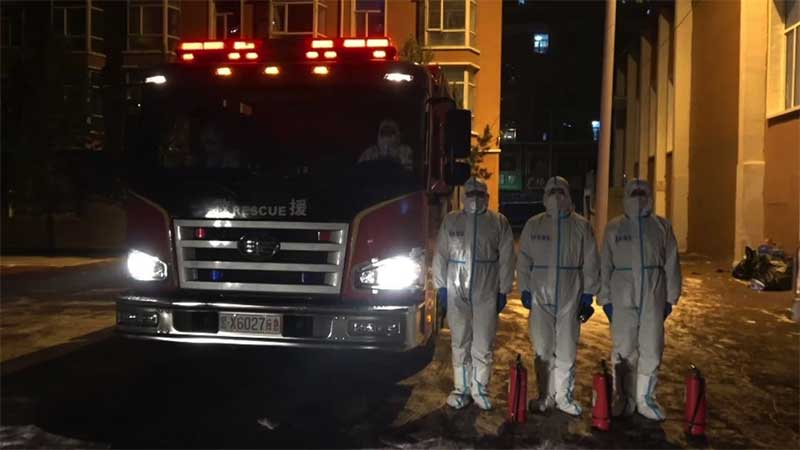 由于實(shí)驗(yàn)室承擔(dān)著艱巨的任務(wù),檢查場所的安全關(guān)乎著全縣抗疫工作的成敗,執(zhí)勤任務(wù)不容有絲毫松懈。針對此次任務(wù),望奎大隊(duì)成立了5人的黨員先鋒隊(duì),由一名指揮員、一名駕駛員、三名消防員組成,執(zhí)勤小組分成兩班,晝夜不停,不間斷的在實(shí)驗(yàn)室外圍進(jìn)行巡邏。
