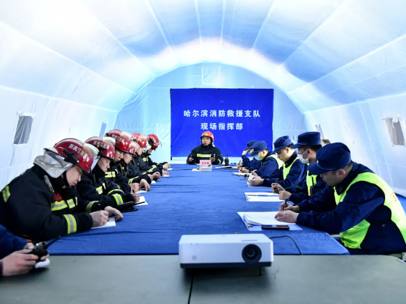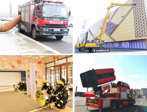 ?哈爾濱海寧皮革城有限公司,位于哈爾濱市道里區(qū)機(jī)場(chǎng)路198號(hào),占地面積約120000平方米,建筑面積334657平方米。演練假設(shè)商場(chǎng)三層牡丹江路62號(hào)專柜因違規(guī)用電發(fā)生火災(zāi),起火面積200平方米,有人員被困,起火單位微型消防站啟動(dòng)應(yīng)急響應(yīng),同時(shí)向119指揮中心報(bào)警。指揮中心調(diào)集嶗山路、中興大道、特勤一、工農(nóng)大街、特勤二站、前衛(wèi)大街、重型機(jī)械大隊(duì)等單位滅火、舉高、供水、排煙、破拆、戰(zhàn)保等作戰(zhàn)單元到場(chǎng)處置。