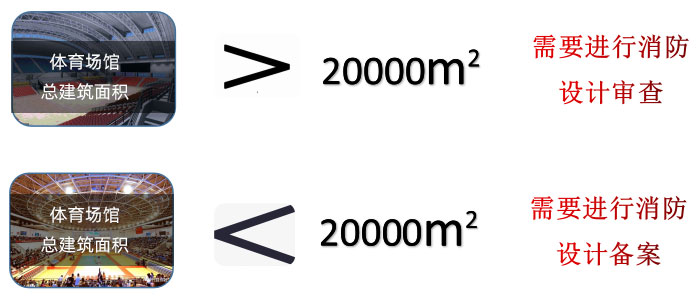 1、對(duì)于總建筑面積大于20000㎡的體育場(chǎng)館要進(jìn)行消防設(shè)計(jì)審查。