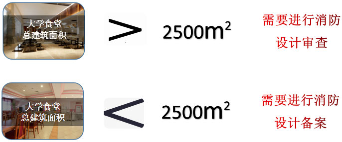 1、對于總建筑面積大于2500㎡的大學(xué)食堂要進(jìn)行消防設(shè)計審查。