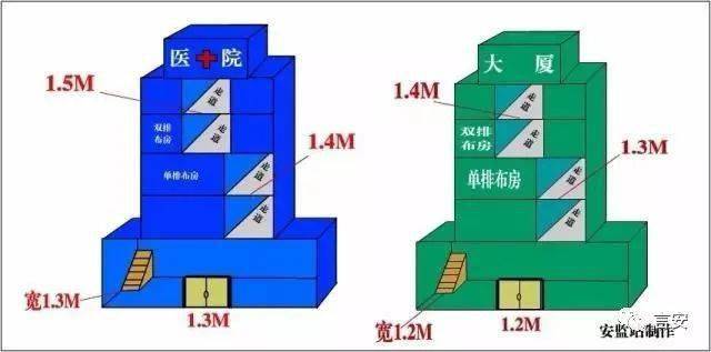 主要依據(jù):高層醫(yī)療建筑樓梯間的首層疏散門和首層疏散外門的寬度為1.3米,單排布房的走道寬1.4米,雙排布房的走道寬1.5米,疏散樓梯寬1.3米。其它高層建筑樓梯間的首層疏散門和首層疏散外門的寬度為1.2米,單排布房的走道寬1.3米,雙排布房的走道寬1.4米,疏散樓梯寬1.2米。 《建筑設(shè)計防火規(guī)范》(GB50016-2014)5.5.18