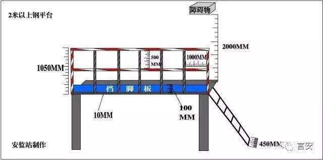 主要依據(jù):防護(hù)欄桿各構(gòu)件的布置應(yīng)確保中間欄桿與上下構(gòu)件之間的空隙間距不大于500MM?!豆潭ㄊ戒撎菁捌脚_安全要求第3部分:工業(yè)防護(hù)欄桿及鋼平臺》(GB4053.3-2009)5.1.2 當(dāng)距基準(zhǔn)面高度大于2米小于20米的平臺、通道、作業(yè)場所的防護(hù)欄桿高度不應(yīng)低于1050MM?!豆潭ㄊ戒撎菁捌脚_安全要求第3部分:工業(yè)防護(hù)欄桿及鋼平臺》(GB4053.3-2009)5.2.2 中間欄桿與上下方構(gòu)件的空隙間距不應(yīng)大于500MM。《固定式鋼梯及平臺安全要求第3部分:工業(yè)防護(hù)欄桿及鋼平臺》(GB4053.3-2009)5.4.2 防護(hù)欄桿端部應(yīng)設(shè)置立柱,立柱間距不應(yīng)大于1000MM?!豆潭ㄊ戒撎菁捌脚_安全要求第3部分:工業(yè)防護(hù)欄桿及鋼平臺》(GB4053.3-2009)5.5.1平臺地面到上方障礙物的垂直距離不應(yīng)小于2000MM?!豆潭ㄊ戒撎菁捌脚_安全要求第3部分:工業(yè)防護(hù)欄桿及鋼平臺》(GB4053.3-2009)6.2.1 斜梯內(nèi)側(cè)凈寬度應(yīng)不小于450MM,不宜大于1100MM?!豆潭ㄊ戒撎菁捌脚_安全要求第2部分:鋼斜體》(GB4053.2-2009)5.2.2 踢腳板頂部在平臺地面以上高度不小于100MM,其底部距地面不小于10MM?!豆潭ㄊ戒撎菁捌脚_安全要求第3部分:工業(yè)防護(hù)欄桿及鋼平臺》(GB4053.3-2009)5.6.1